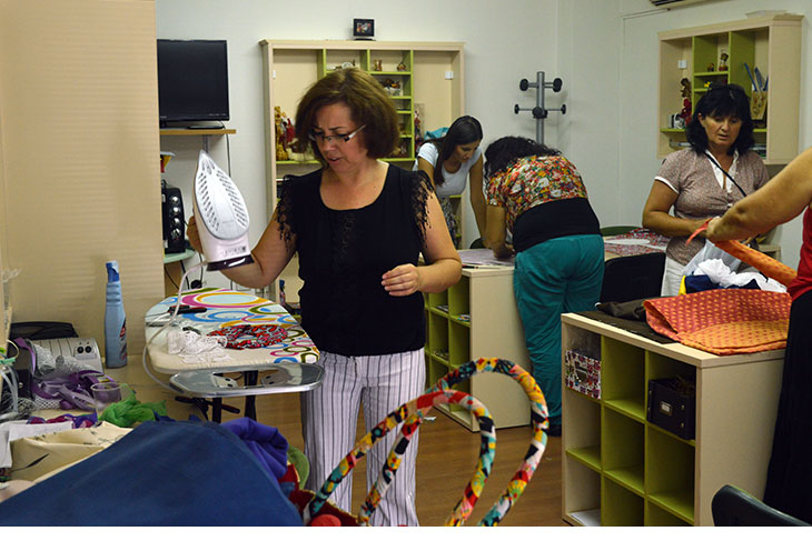 Обучувачката Јасмина Огнанова на втората работилница за доработка ги поттикна 18-те жени од оваа група, да создадат производи од веќе износени панталони, кошули и блузи.