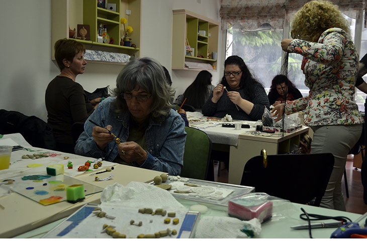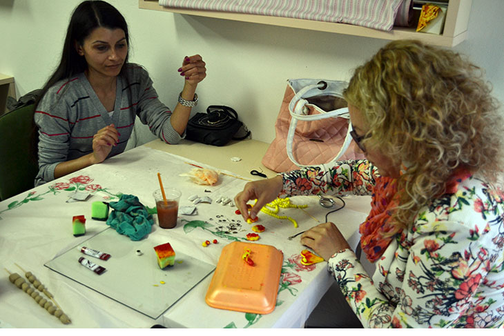 Дваесетте Креативки кои се дел од групата за изработка на накит на третата обука изработуваа парчиња накит од полимерна глина. Целиот процес на изработка на накит од полимерна глина е не е едноставен. Составен е од повеќе фази. Прво глината се омекнува за да добие обработлива форма. Потоа од неа со голема прецизност се изработуваат посакуваните форми на накит. Наредна е фазата на сушење по што следува бојадисување со бои и на крај се финишираат со акрилен безбоен спреј кој им дава цврстина и сјај.