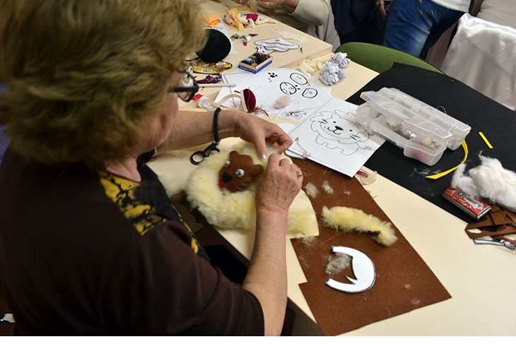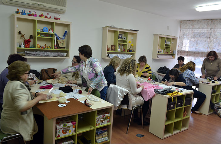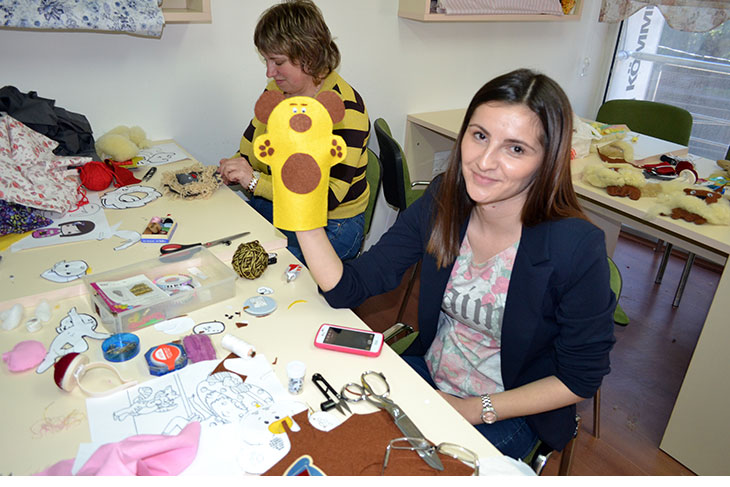 Осумнаесетте Креативки има доста работа. Прво теркот го прецртуваа на материјалите, потоа ги кроеја и илисуваа играчкитеза потоа финално да ги сошијат на машина. На крајот следеше полнењето на играчките лавче, девојче, момче и другите.