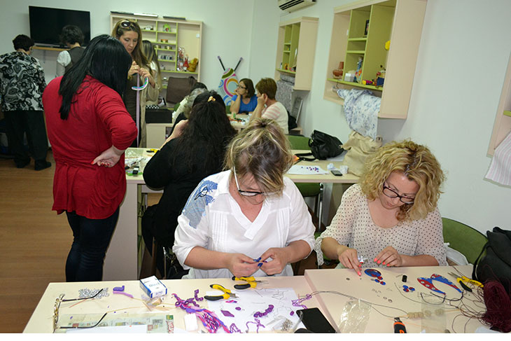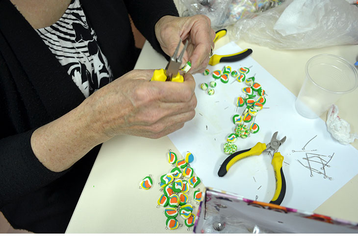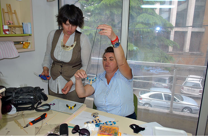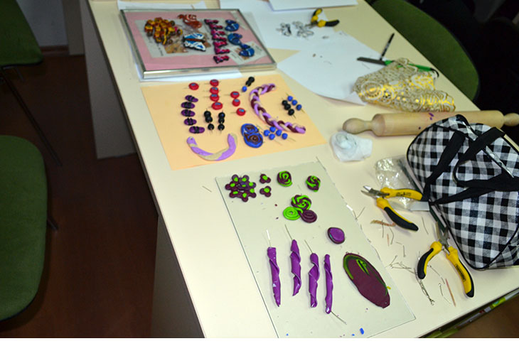 Креативките од групата за изработка на накит, најдолго време во Креативниот центар, останаа за време на четвртатта работилница. Оваа работилница беше најинтересна за дваесетте учеснички од оваа група во проектот. Станува збор за изработка на накит во повеќе фази и е потребно повеќе време. Креативките прво фимото го омекнува со специјален омекнувач. Потоа со оклагии го расукуваа за да ја добијат посакуваната форма од која сечеа ленти во различни бои, па ги спојуваа за да добијат шаренолика основа на која ги исцртуваа и сечеа делови за гердани, брезлетни, обетки и брошеви.